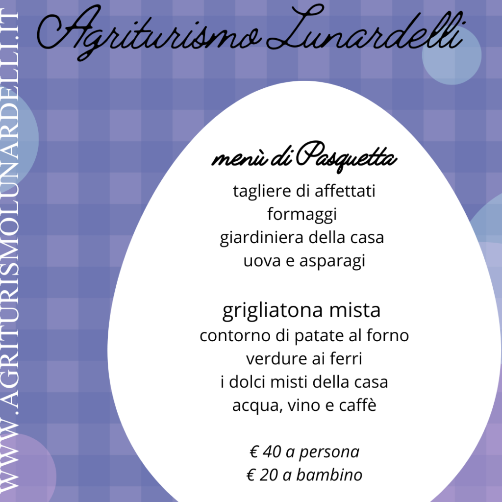 Per una Pasquetta in compagnia, l’Agriturismo Lunardelli è perfetto! Vi attenderemo con un aperitivo in tavola per festeggiare insieme, affrettatevi c’è ancora posto! Antipasto Tagliere di affettati con formaggi, giardiniera della casa, uova e asparagi Secondo Grigliata mista Contorni Patate al forno Verdure ai ferri Dessert Dolci misti della casa Acqua, vino e caffè € […]