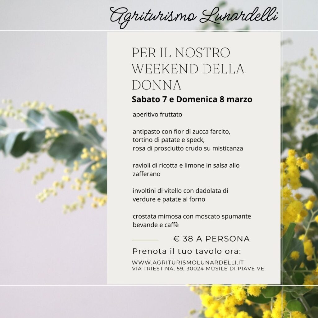 Festa della Donna all’Agriturismo Lunardelli Sabato 7 e Domenica 8 marzo ti aspettiamo in agriturismo con una sorpresa per tutte le donne, ed un menù speciale e dedicato! Oltre al nostro menù alla carta ti proporremo piatti selezionati e pensati per questa occasione unica: aperitivo fruttato antipasto con fior di zucca farcito, tortino di patate […]
